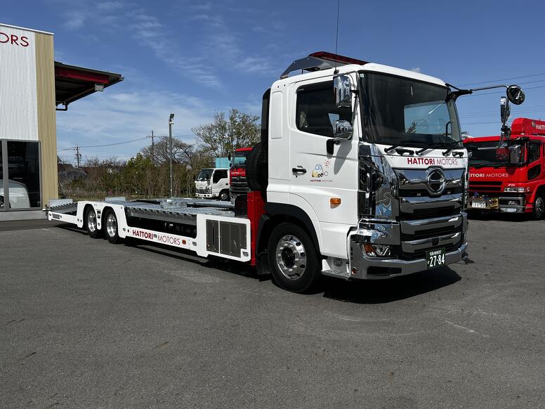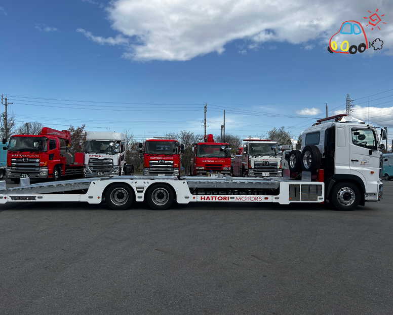 4トン車は今までレッカー搬送でしたが、上に載せて運べる車両です。 時間短縮、疲労軽減、安全走行が可能です。