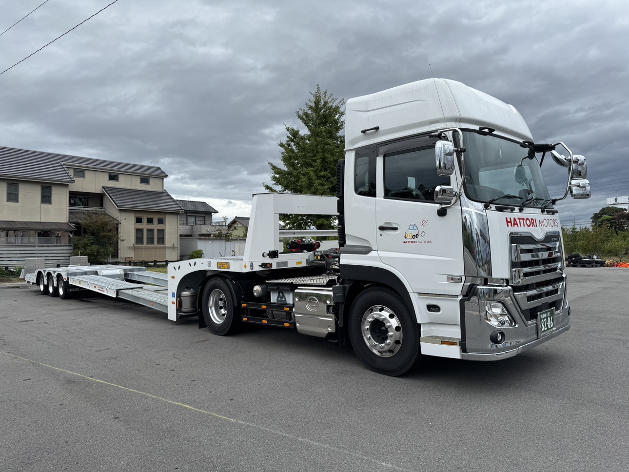 全長12Mの大型トラック、観光バスまで載せて搬送できるようになりました。