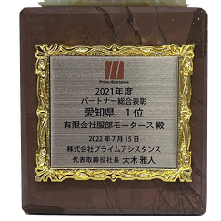 2022年7月15日 プライムアシスタンス様(SOMPOホールディングス)より2021年度 総合表彰 愛知県1位という栄誉をいただきました!